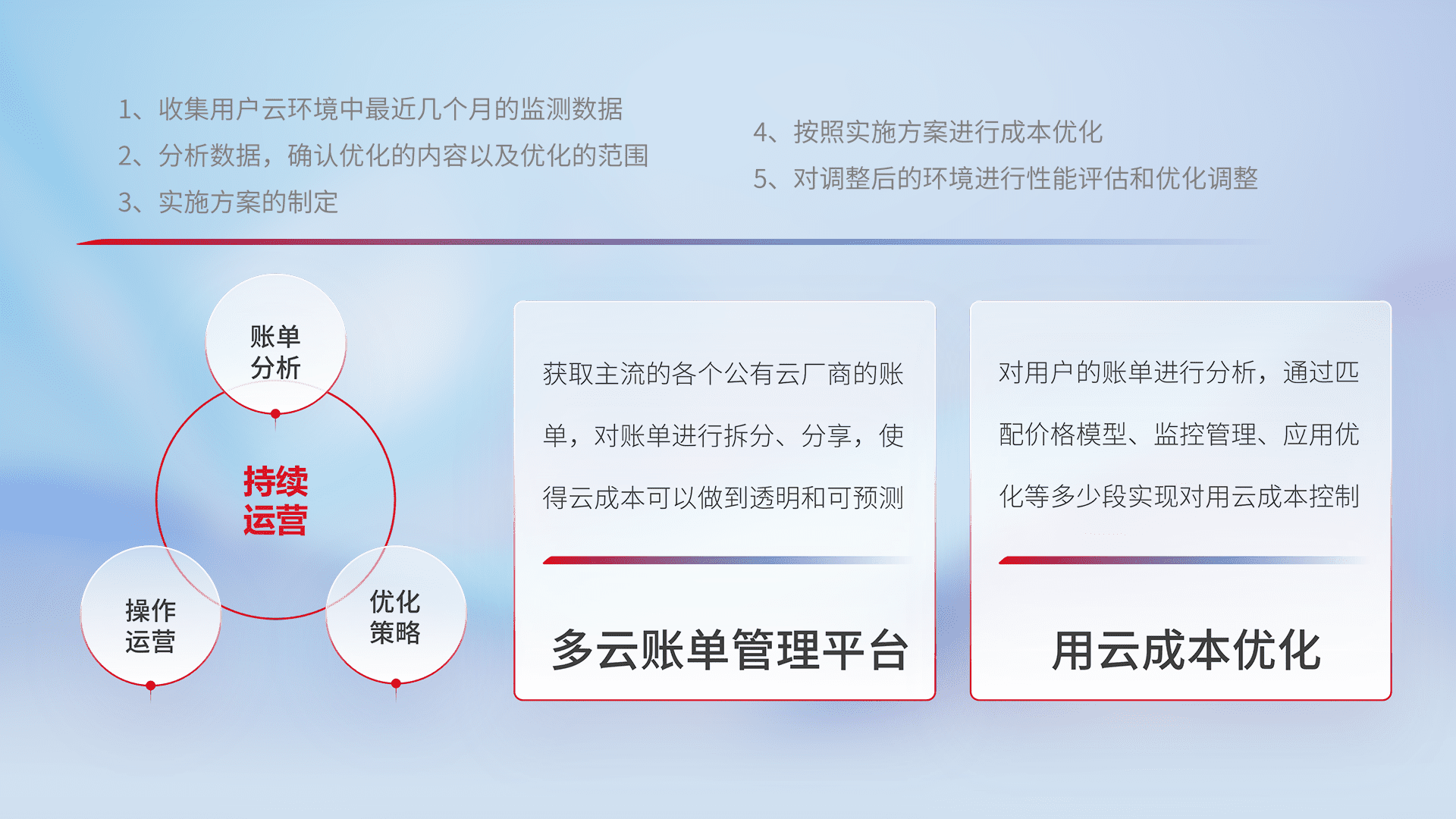 运用智能化工具分析云资源,,,,提供日常费用可视化工具,,自动账单拆分,,,成本优化云上费用,,降本增效。。